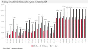 The average yield of 91-day T-bills at auction so far this year has been 15.0%, annualised, as opposed to an average of 5.2% in 2023; the average yield for 1-year T-bill has been 23.3% against an average of 13.3% in 2023.