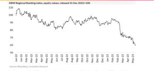 A big concern is the impact of high interest rates on regional banks in the US. While the recent banking crisis might be out of the woods, high rates could add to the banking system’s stress as more regional banks book losses on their bond positions and on their real estate loans.