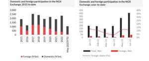 Even through the NGX Exchange All-Share Index recorded three straight years of positive returns in 2020, 2021 & 2022, the share of foreign investors in trading fell during this period.