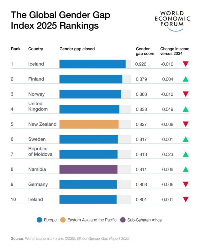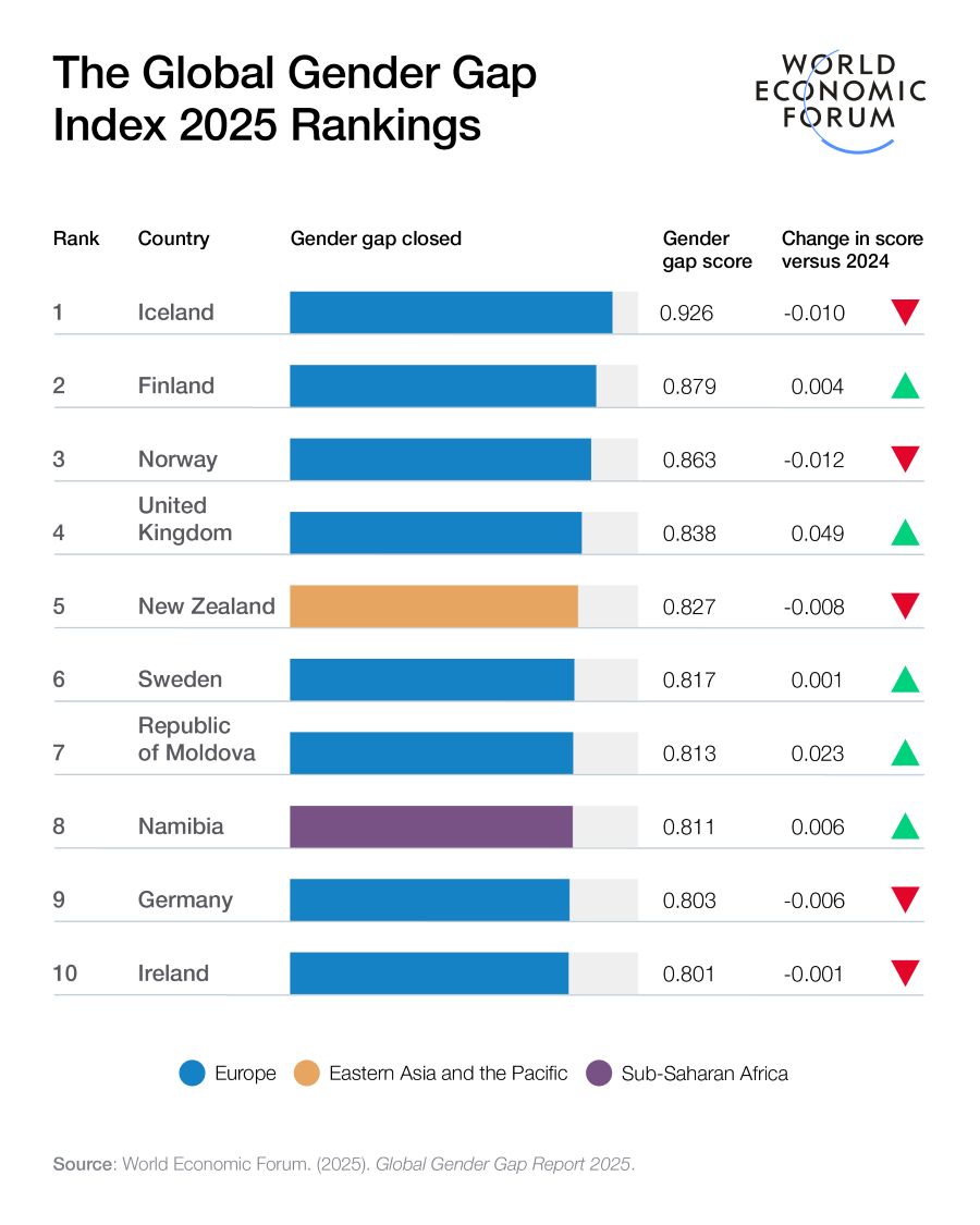 …Iceland maintains its position as the world’s most gender-equal economy for the 16th consecutive year, with 92.6% of its gender gap closed – the only economy to surpass 90% parity