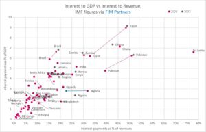 Sri Lanka + Ghana in top right have both defaulted, Zambia is not in a good place and did too. Egypt is clearly risky. Pakistan I think will default (so does the mkt). Kenya looks similarly risk to India, but India and Egypt both have the advantage of lots of local savings.