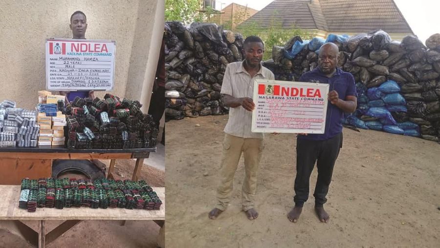 In Kaduna, NDLEA operatives on patrol along Kaduna – Zaria expressway at Gwargwaje on Wednesday 21st May, intercepted 22-year-old Muhammad Hamza with 57,750 pills of tramadol and diazepam, while same day their counterparts in Bauchi arrested Usman Muhammad, 45, along Bauchi-Misau road with 80 blocks of skunk weighing 45kg.