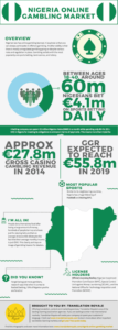 Gambling licenses in Nigeria are issued by the National Lottery Regulatory Commission. Sports betting is explicitly mentioned in the gambling legislation among casino gambling and lottery.