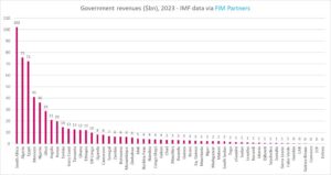 Algeria is the 2nd biggest (effective) state in Africa – Egypt is 3rd. There are 16 countries (I include “no data” Eritrea) with annual government revenues of $1bn or less.