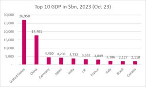 World GDP is estimated at $104 trillion in 2023 (up from the “easier to remember” $100 trillion in 2022).