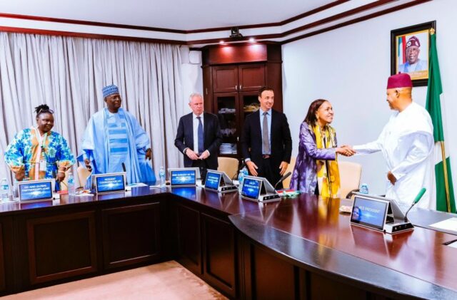 Vice President Kashim Shettima with Co-Chair of the Generation Unlimited Nigeria Board, Saeed Wafaa, UNICEF Nigeria Representative